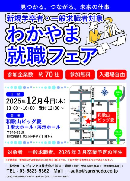 2025.12.03 ニュース 赤土マガジン わかやま就職フェア(2025.12.4) 急に師走の風が漂うようになりました。 今週はわかやま就職フェアに出展します。 寒い日も暑い日も雨の日も風の日も、季節の移ろいとともに大変なこともある建築現場ですが、建物づくりを通してやりがいを見つけてみませんか。 ビッグ愛にて、お待ちしております。 一覧へ NEXT
